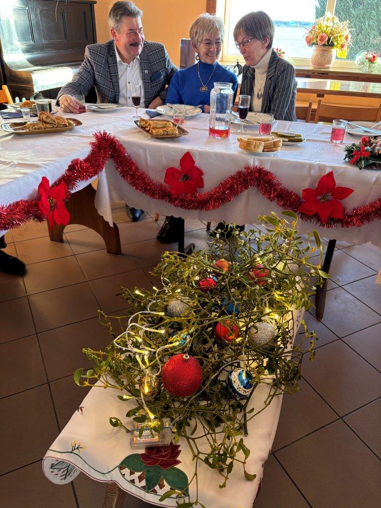 Spotkania rozpoczęto o 13.00  symboliczną lampką szampana, noworocznymi życzeniami, podziękowaniami  dla przyjaciół AKJ za wsparcie oraz aktywnym członkom AKJ za  wspólne, liczące się w 2024 roku dokonania. W dalszych akcentach programu spotkania był  „roboczy”  ale smaczny (wysiłkiem Ani i Jadwigi) lunch (pora ku temu była odpowiednia) i rozmowy o czekających  najważniejszych zadaniach  w 2025 roku,  takich jak: