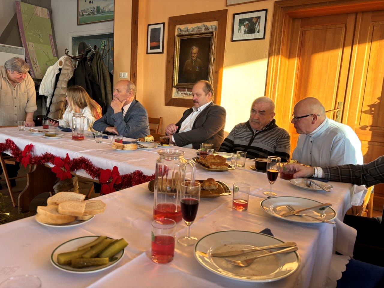 Spotkania rozpoczęto o 13.00  symboliczną lampką szampana, noworocznymi życzeniami, podziękowaniami  dla przyjaciół AKJ za wsparcie oraz aktywnym członkom AKJ za  wspólne, liczące się w 2024 roku dokonania. W dalszych akcentach programu spotkania był  „roboczy”  ale smaczny (wysiłkiem Ani i Jadwigi) lunch (pora ku temu była odpowiednia) i rozmowy o czekających  najważniejszych zadaniach  w 2025 roku,  takich jak: